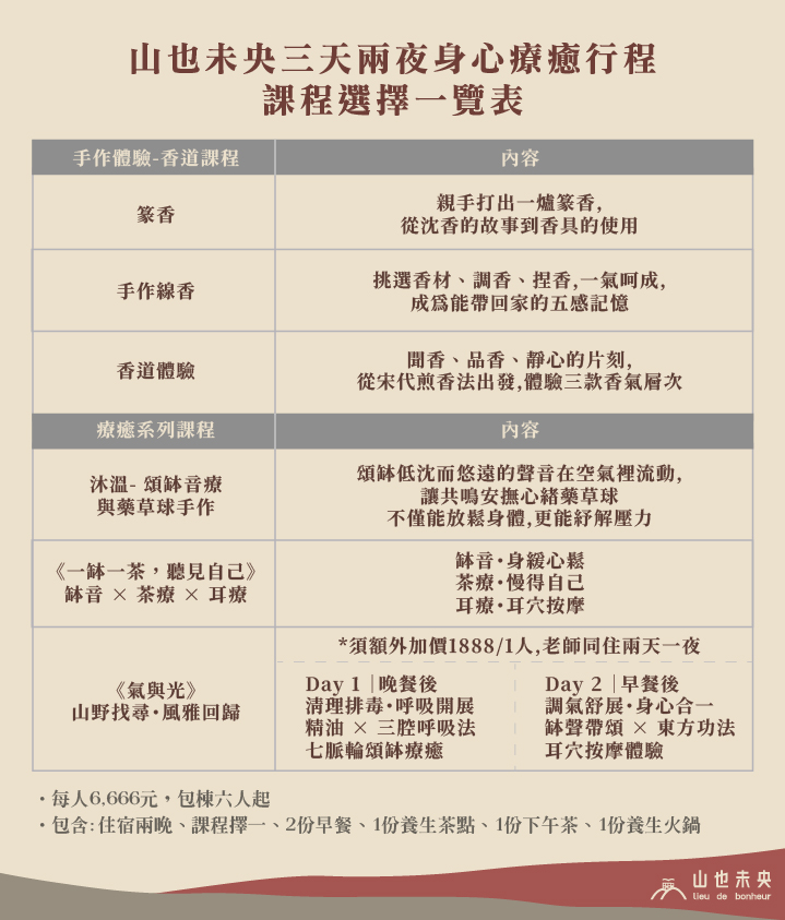 無論是頌缽音療、氣功耳療或者是香道